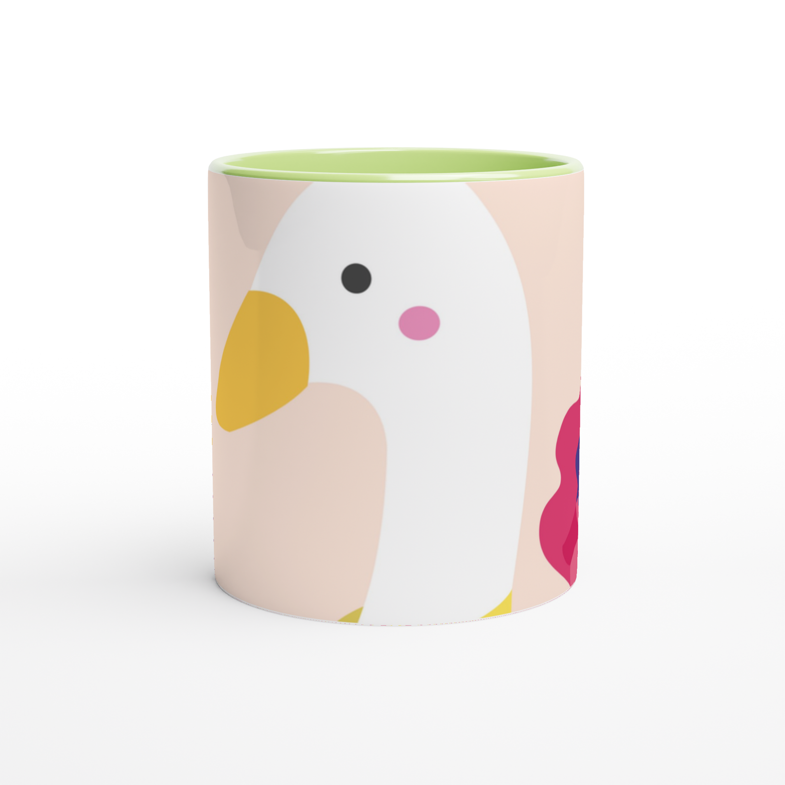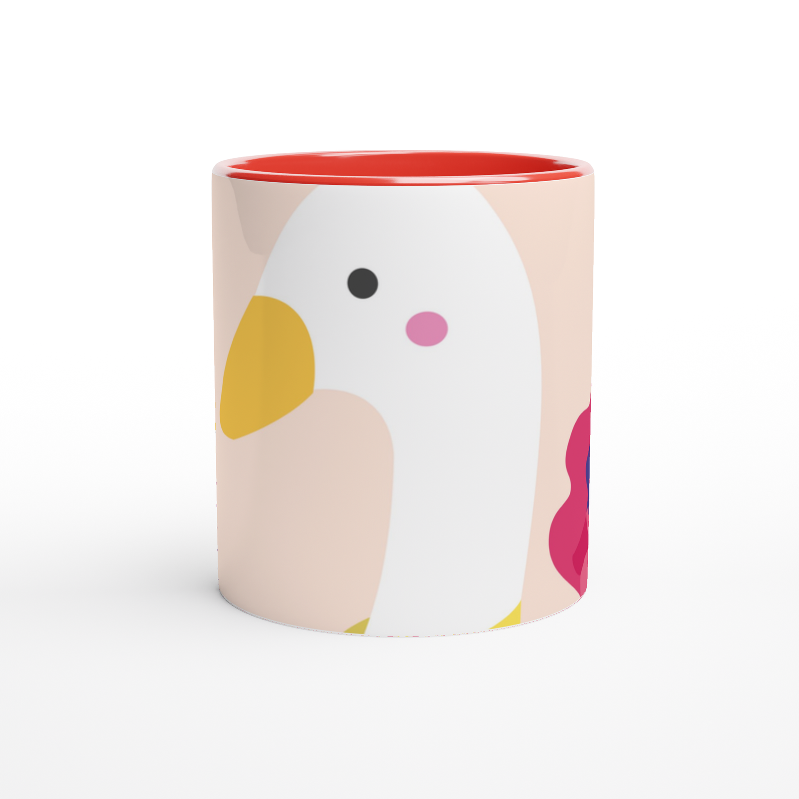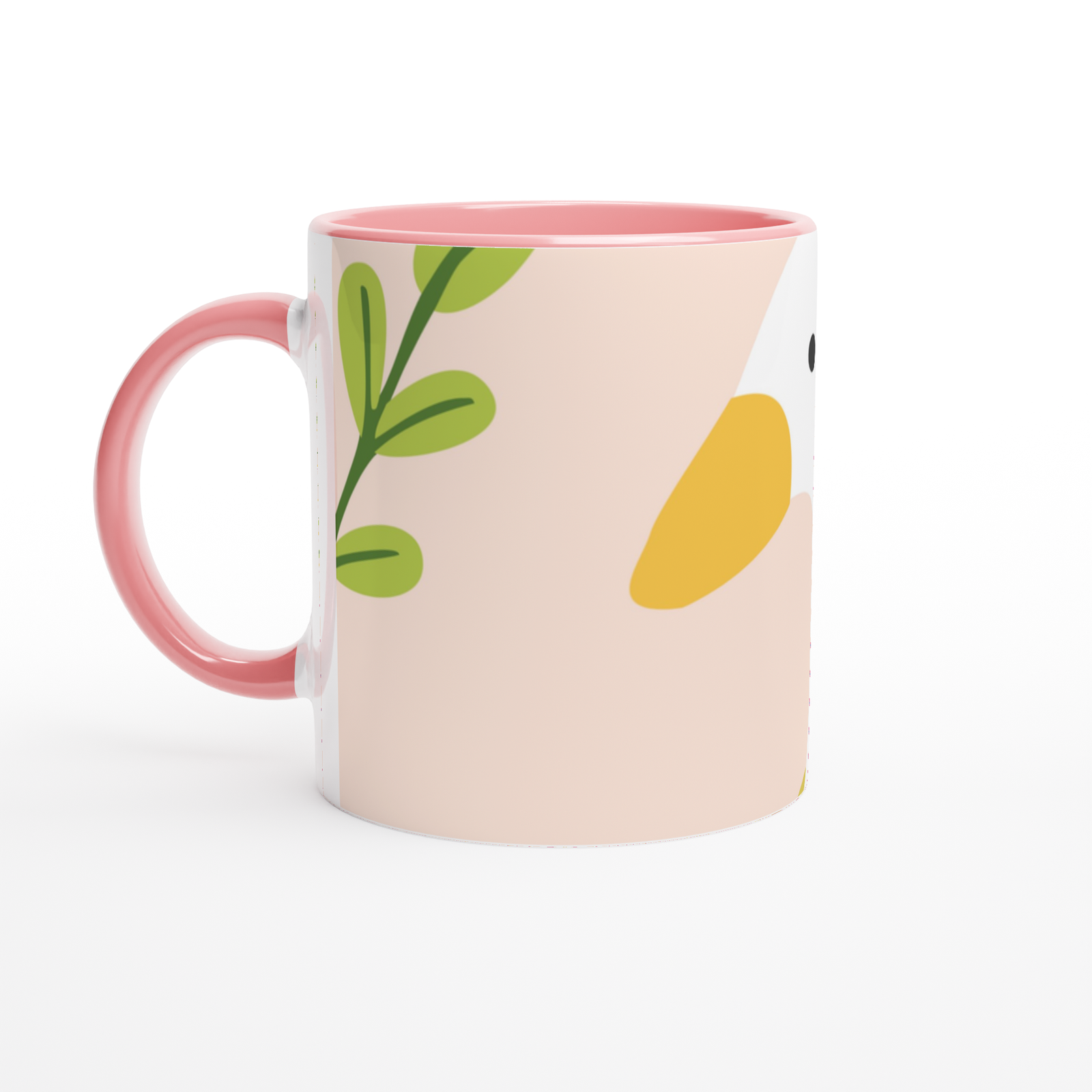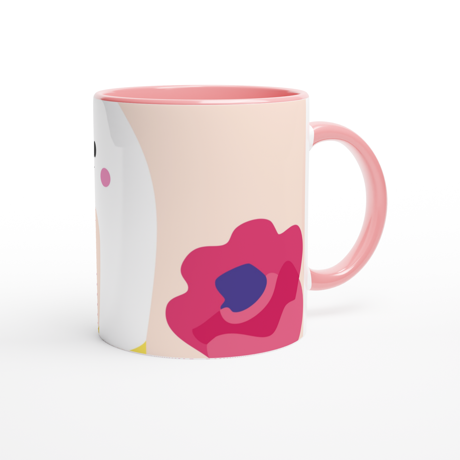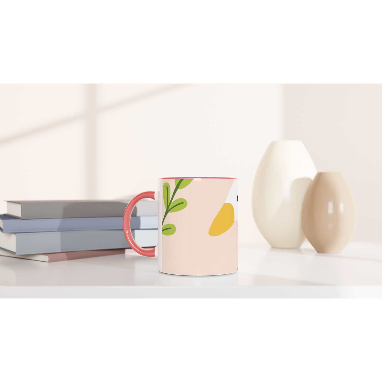 This beautiful ceramic mug is perfect for any event of the day. Your morning coffee, a hot chocolate, or any other hot beverage you enjoy. The mug is glossy white with a colored rim, inside, and handle. The prints come out beautifully and vividly on it. The print retains its quality and luster when used in both microwaves and the dishwasher.