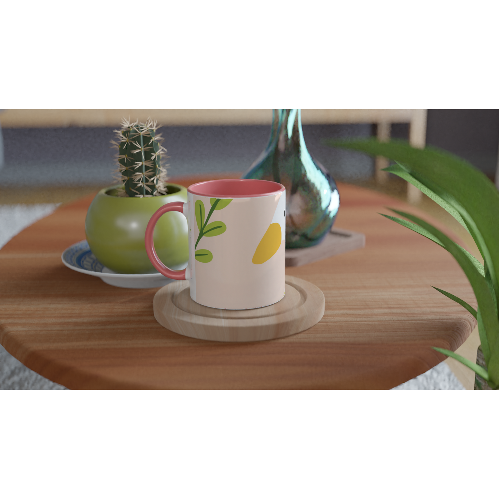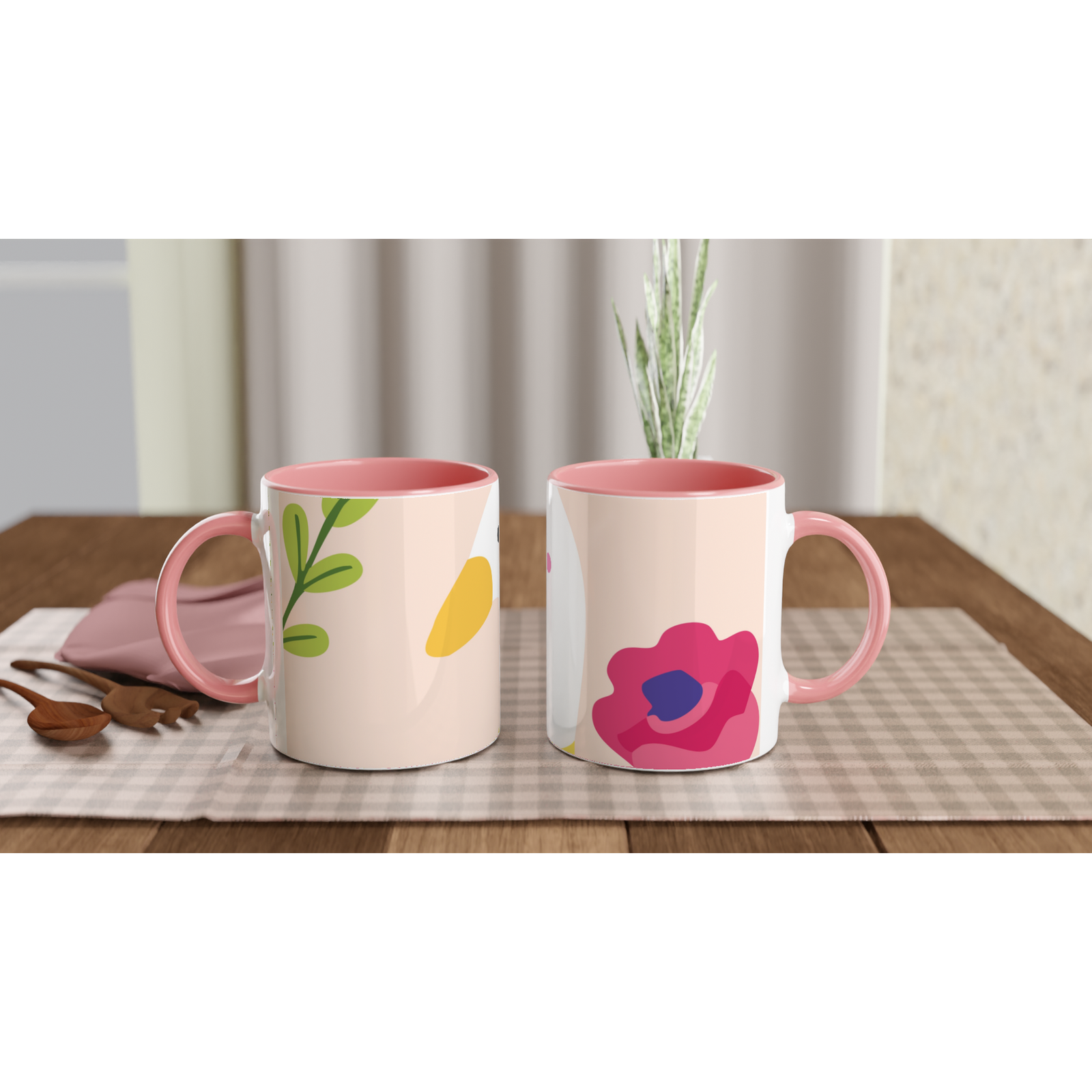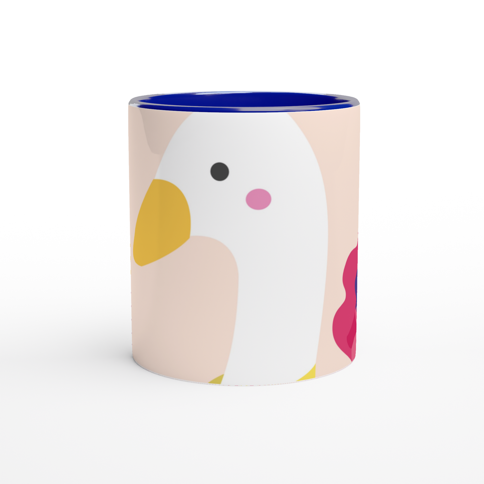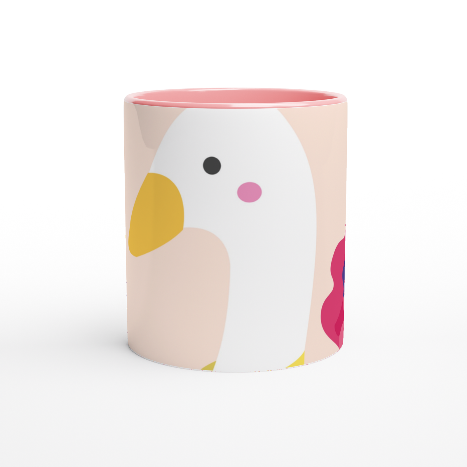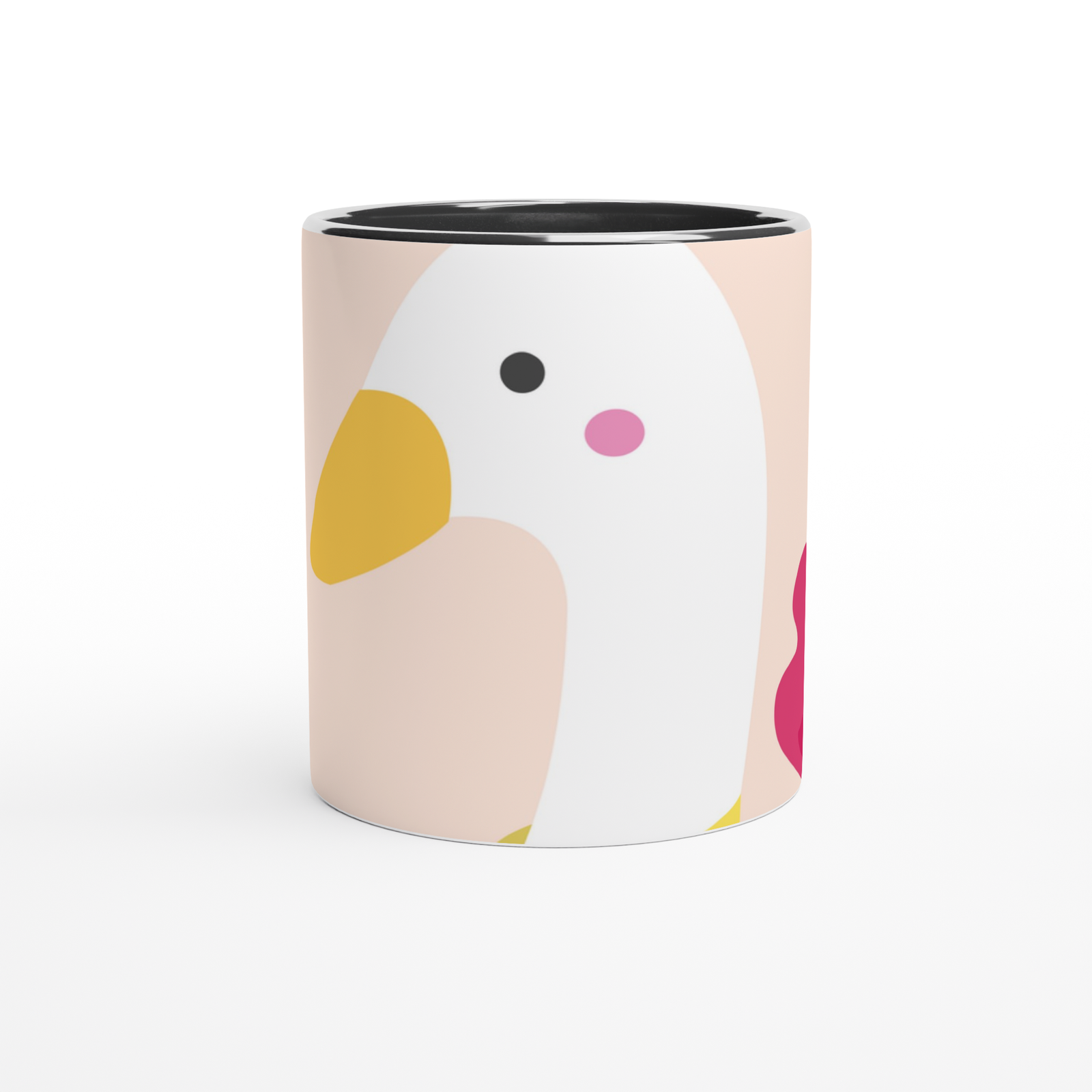 This beautiful ceramic mug is perfect for any event of the day. Your morning coffee, a hot chocolate, or any other hot beverage you enjoy. The mug is glossy white with a colored rim, inside, and handle. The prints come out beautifully and vividly on it. The print retains its quality and luster when used in both microwaves and the dishwasher.